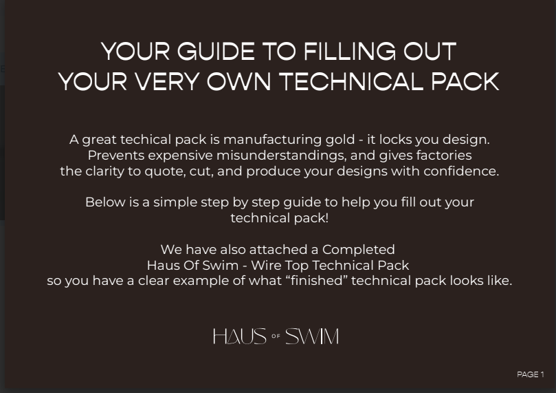 A professionally written, swimwear-specific development guide designed to walk you through how a technical pack should be structured for real production.
